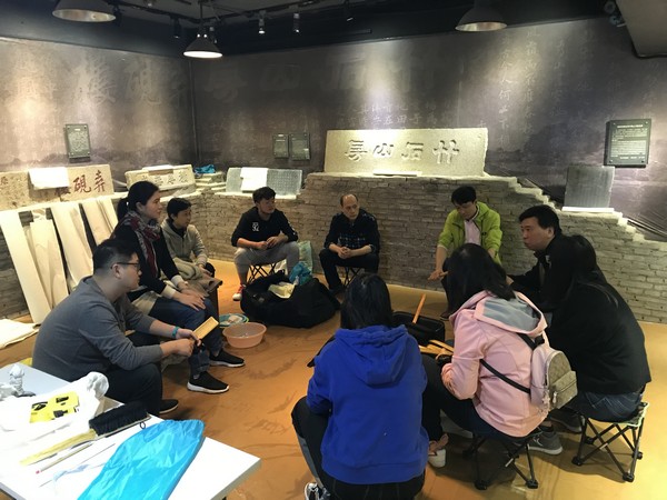 学员在室外进行传拓