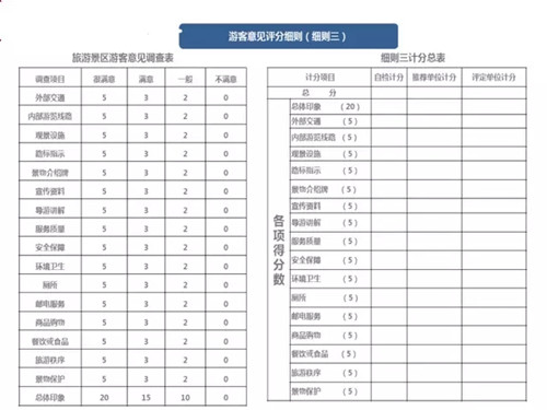 关于具体如何评定景区标准,国家旅游局需要以下三个细则:《资源质量与市场影响评分细则》、《旅游设施与服务质量评分细则》、《游客意见与评分细则》。
