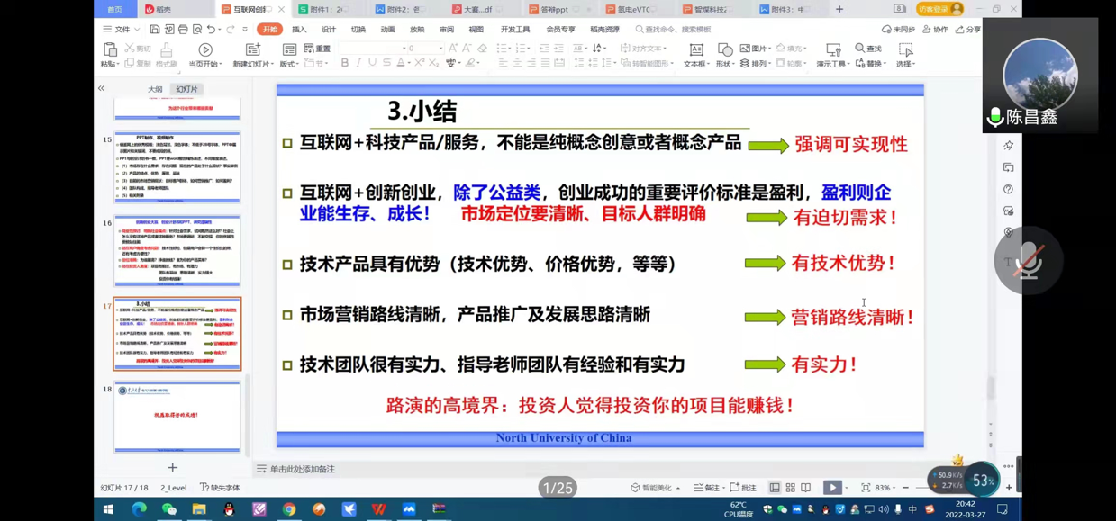 陈昌鑫老师重点从“如何撰写创业计划书”和“如何制作PPT”两个方面为出席会议的师生进行了细致讲解,并对已完成组队的项目,就后续提交材料和答辩工作的展开提出建议;就创业计划书、答辩PPT的制作进行了介绍,为参赛组的工作提了供思路;同时强调项目中要体现可实现性、大众需求性以及技术优势。最后陈昌鑫老师“睿智创新始于心,激情创业践于行。”勉励污污漫画
