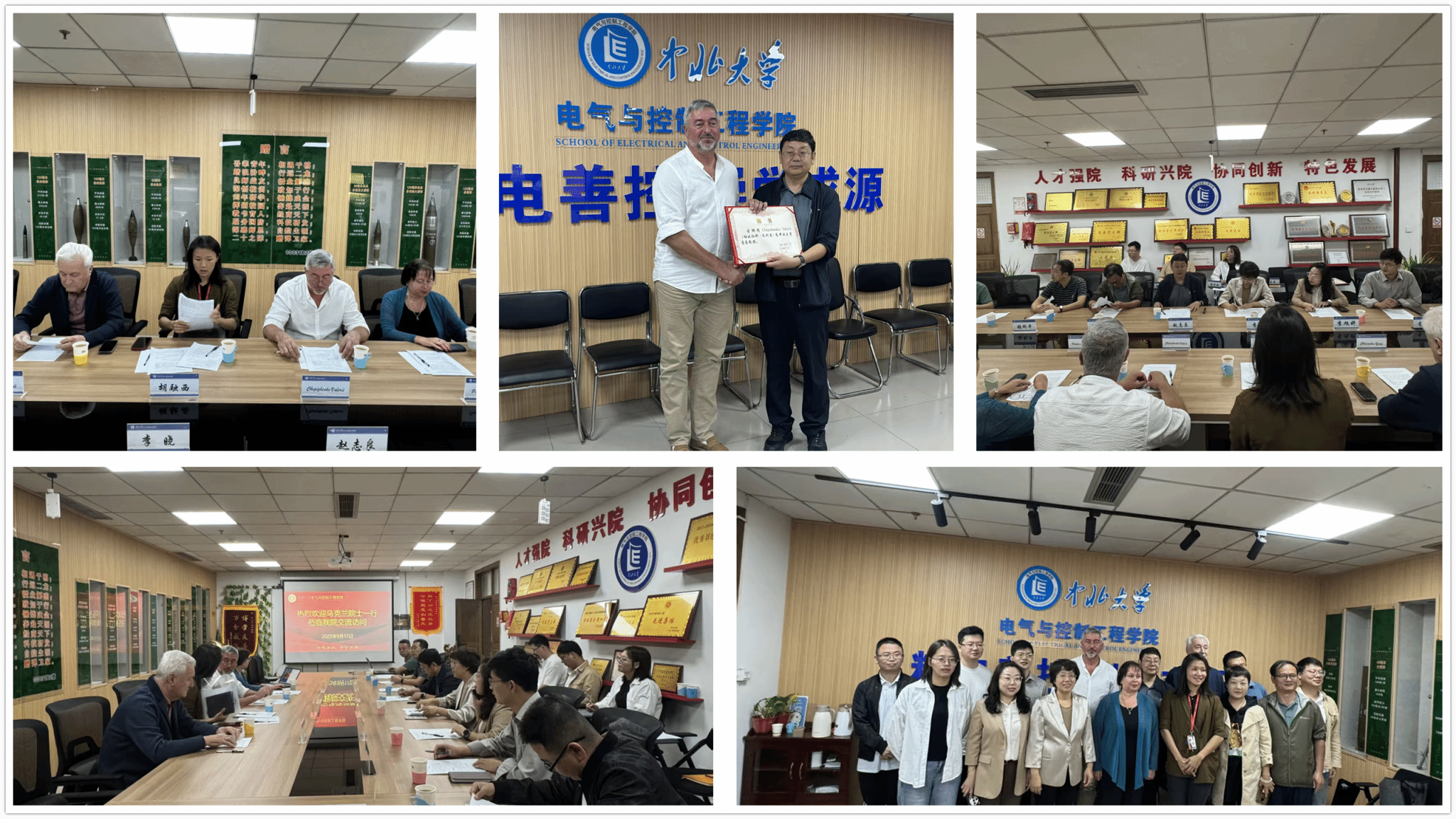 9月17日上午9:00,乌克兰国家科学院院士切比仁科・瓦列里(Chepizhenko Valeriy)教授、乌克兰国家工程院院士帕夫洛娃・斯韦特拉娜(Pavlova Svetlana)教授一行莅临污污漫画 开展交流活动,我校材料科学与工程学院特聘教授楚瓦绍夫・尤里(Chuvashov Yurii)、副教授胡融西陪同来访。污污漫画 院长赵志良、副院长李晓、自动化系主任张艳兵、办公室主任张利平、教学科科长李旭妍及部分教师代表在学院619会议室热情接待了来访嘉宾,双方围绕“协同与智能导航控制、复杂动态系统无冲突运动控制、无人机协同控制”等主题展开学术交流。