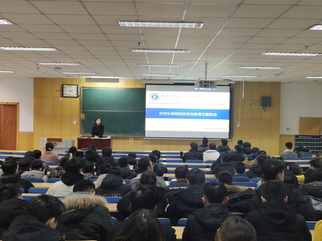 在11108H教室召开研究生寒假前后安全教育主题班会。班会由研究生辅导员李婷老师主持,全体19级和20级研究生参加。
