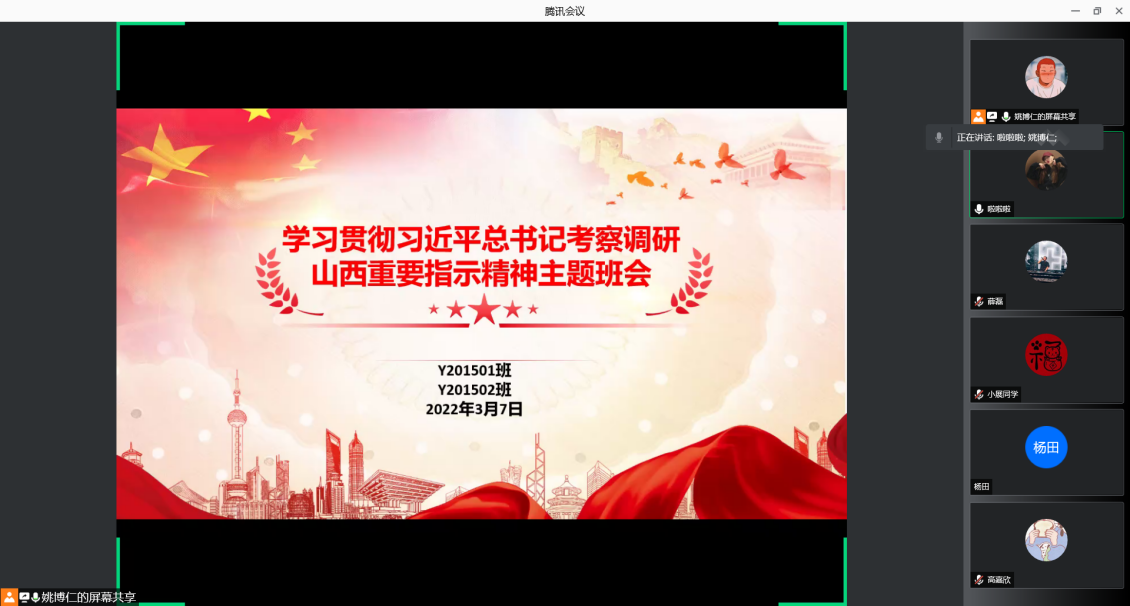 研究生通过腾讯会议的形式召开了“学习贯彻习近平总书记考察调研山西重要指示精神”的主题班会。