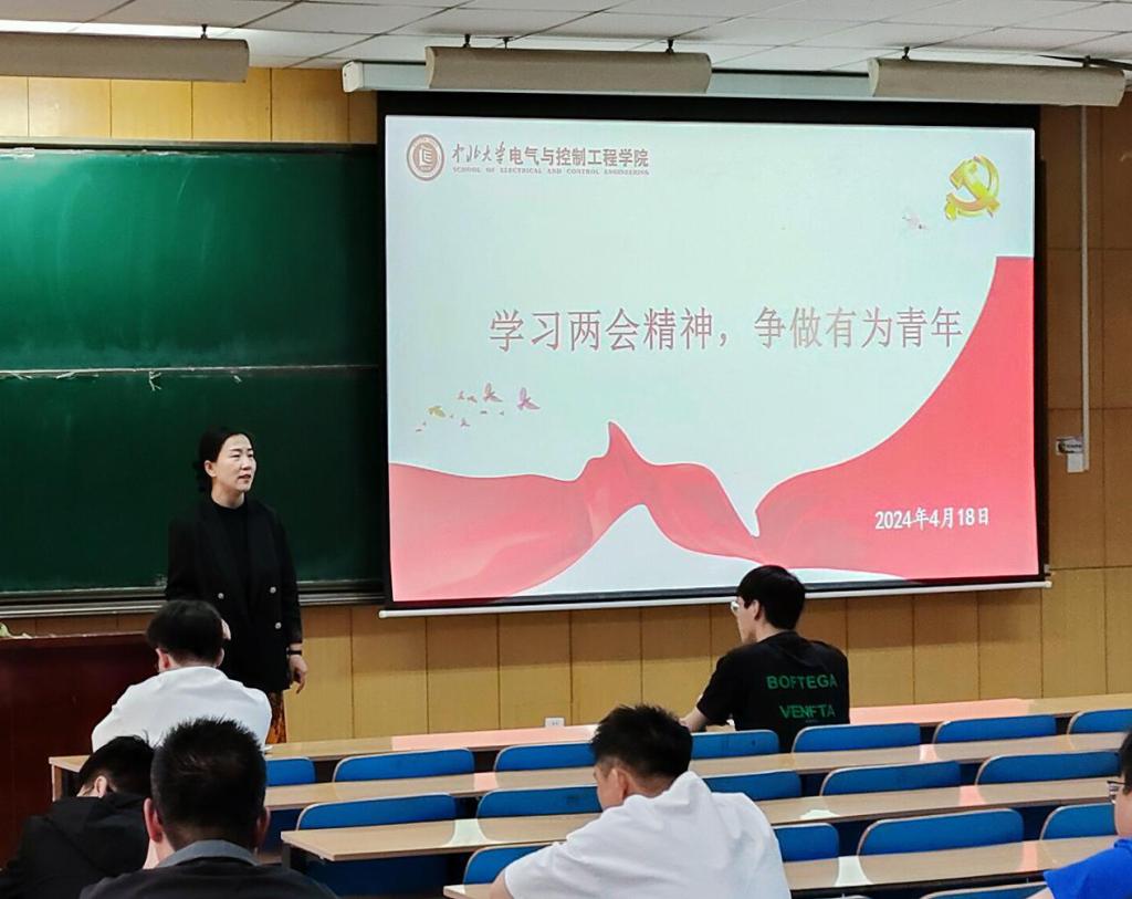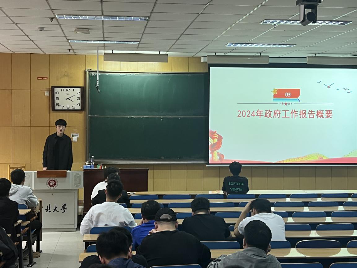 会议伊始,李婷老师以“2024年全国两会精神传达学习”为主题,围绕全国两会基本概况、政府工作报告等进行传达学习,解读了两会重点、热点、亮点。同时,李老师寄语学生要认真学习和掌握理论知识、专业技能,培养创新思维,努力成为发展新质生产力所需要的高素质人才,成为能够担当民族复兴大任的时代新人。随后,各班团支书也从不同角度带领大家学习了习近平总书记重要讲话和全国两会精神,同学们纷纷表示,关注两会热点,深刻感知到中华民族伟大复兴的目标正在变为现实,每一个话题也与大家的学习生活息息相关,要对自己提出更高的要求,为全面建设社会主义现代化国家贡献青春力量。