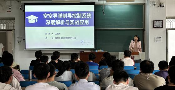 讲坛开始,余红英教授向在场师生介绍了王利勇工程师。王工程师长期从事导弹制导控制系统研发工作,担任多个型号项目副总设计师,授权国防专利10余项,获国防科技进步一等奖1项,具有丰富的理论积淀和工程实践经验。在随后专题报告中,王利勇工程师从发展现状、技术原理、系统构成和实际应用四个方面展开深入讲解。他首先通过生动的讲解,直观展示了空空导弹制导控制系统的工作原理;随后结合具体工程案例,详细解析了惯性导航、雷达制导、红外成像等核心子系统的最新技术进展;最后,王工程师还分享了在实际应用过程中的创新实践和宝贵经验。