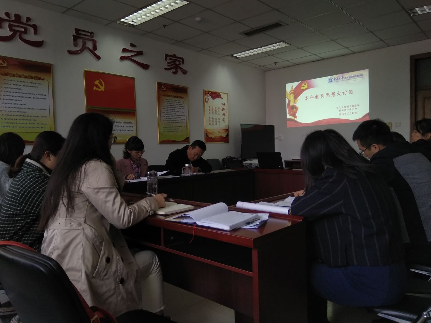 教职工第一支部在主楼621开展本科教育思想大讨论活动。支部全体党员参加了此次学习活动。本次活动由支部书记杜苇主持。