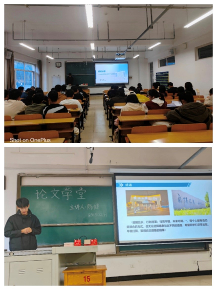 为使23级新生对大学生活及学习方法有进一步了解,提高同学们的论文写作能力,20150242班的陈健同学受邀作为论文学堂主讲人于2023年11月3日在15201H教室面向23150241班同学进行经验分享。