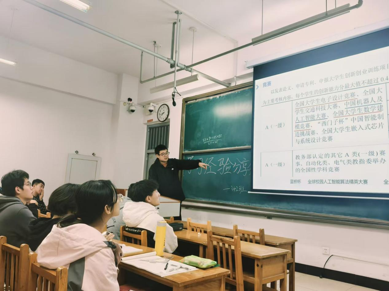 在15303H教室举办了第六期榜样引领学习经验交流会,本次讲座由保研学生杨秉林、王晨怡、王喆面向24150342进行讲解。