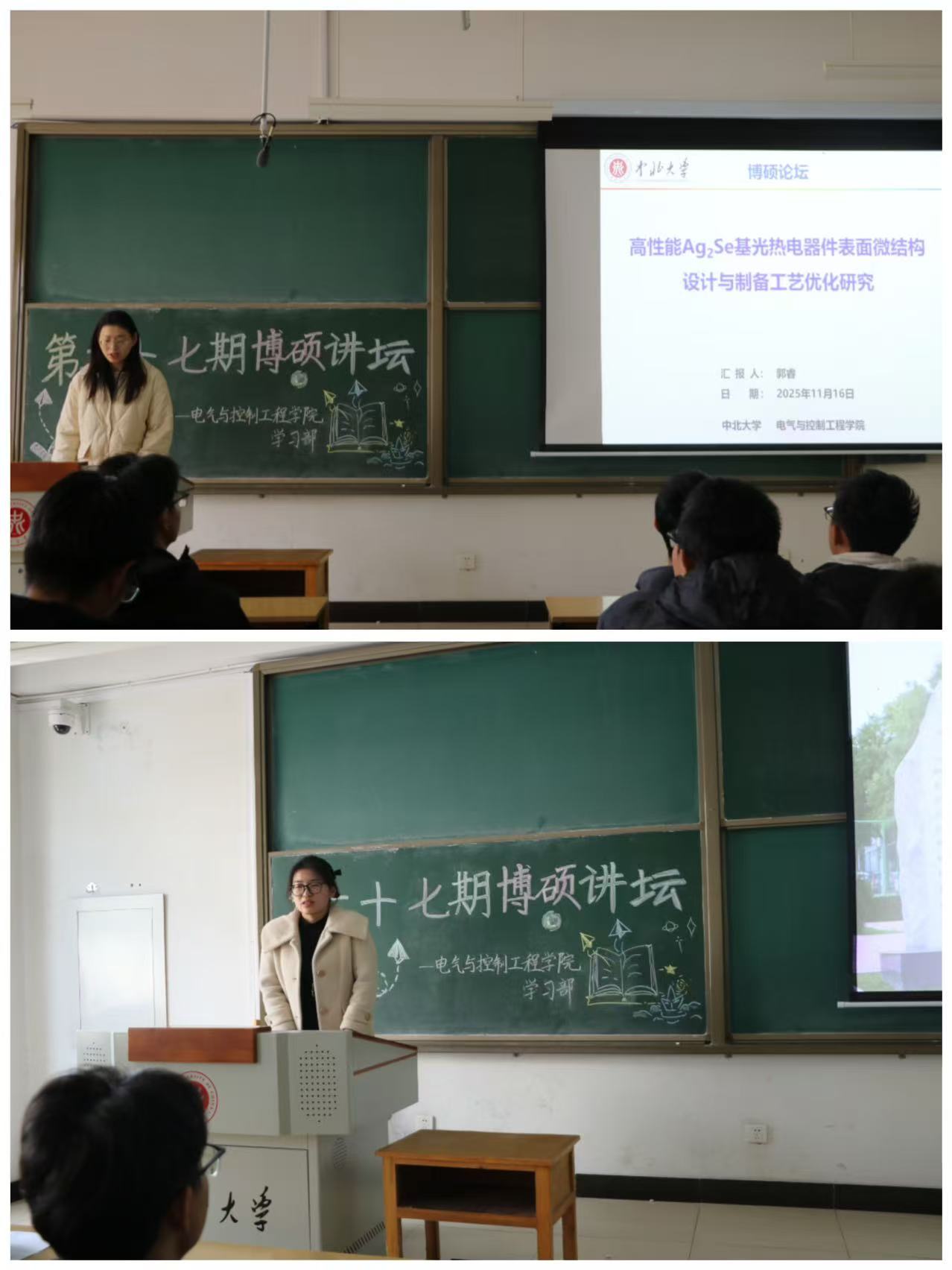 首先,郭睿同学以《高性能Ag2Se基光热电器件表面微结构设计与制备工艺优化研究》论文为切入点,深入解读光热电器件的材料特性、表面微结构设计原理,以及制备工艺的难点与优化方案等。结合自身从本科到研究生的成长历程,她还分享了专业学习、学科竞赛、学生工作及考研备考中的实用经验。