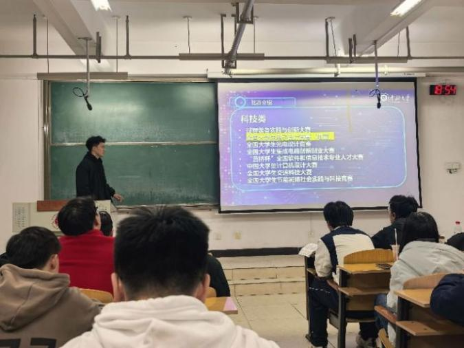 张帅以自身丰富的竞赛履历为依托,围绕大学竞赛的价值与实践路径展开分享。他指出,科研竞赛是学生搭建能力进阶阶梯、拓宽知识视野的优质成长平台,更是实现个人综合能力跃升的关键抓手。以中国机器人大赛为例,赛事中的机械结构设计、智能算法调试等环节,能推动学生在实战场景中深化对机器人技术的理解,实现从“纸面理论”到“理论+实践”的立体式能力成长。同时,竞赛也是拓展视野与整合资源的有效平台,在中国国际互联网+大学生创新创业大赛中,学生可对接产业实际命题、跨校组建协作团队,在智慧农业、医疗科技等前沿领域探索实践。分享尾声,张帅学长寄语在场同学:“不必被众多建议束缚手脚,敢想敢干才是核心,很多事情大胆尝试就有可能收获成功。”