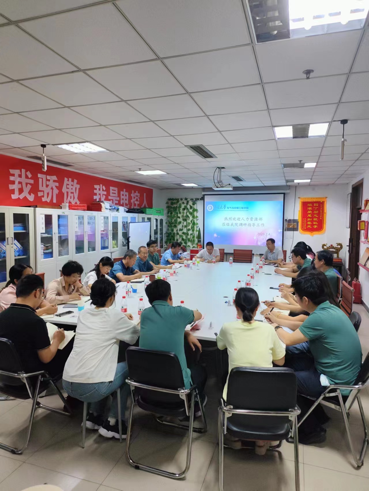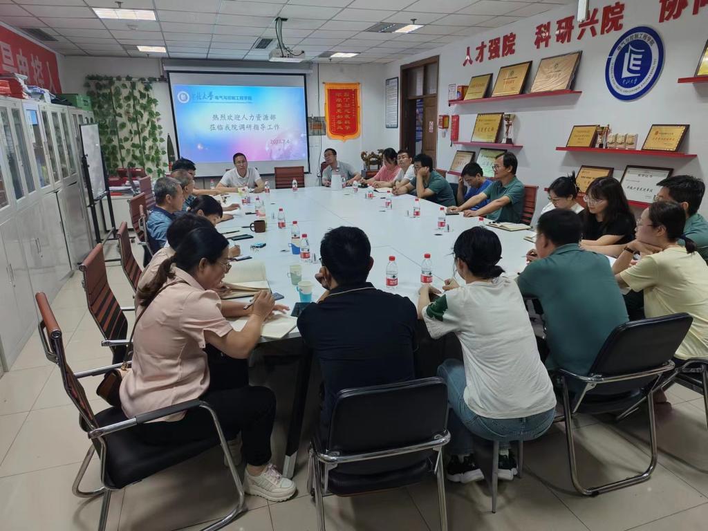 在619会议室召开绩效、职称评审、人才引进座谈会,人力资源部部长王俊元莅临学院指导工作,全体院领导、科长、系主任和青年教师代表参加了座谈会,会议由院党委书记赵正杰主持。