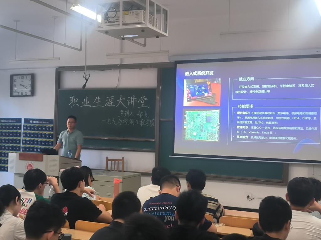 讲堂伊始,郑飞学长首先回顾了自己在母校的青葱岁月,那些在校园里学习、成长的点滴引起了在场学子们的共鸣。讲堂中,他从职业规划、行业选择、职场技能提升等多方面分享了自身的职业生涯经历,结合自身的工作中生动的案例析,阐述了如何在竞争激烈的职场环境中脱颖而出,引导学弟学妹明确自身的职业目标,并根据目标制定合理的发展路径。强调了持续学习与适应行业变化的重要性,鼓励大家积极提升自身专业技能与综合素质。