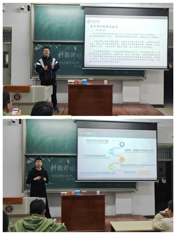 “一苇以航”辅导员工作室在11211教室成功举办第二十一期科技讲坛,本次讲坛邀请了电气创新实验室的王慧军与电子设计创新实验室的陈则达为同学们介绍实验室以及创新创业项目的知识,为同学们日后参加创新项目实验提供了宝贵的指导和建议。