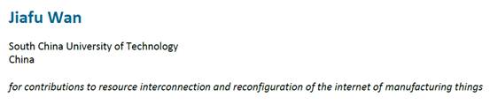1996级自动化专业校友,华南理工大学万加富教授成功入选,入选理由:for contributions to resource interconnection and reconfiguration of the internet of manufacturing things,对制造物联网的资源互联与重构做出的贡献。