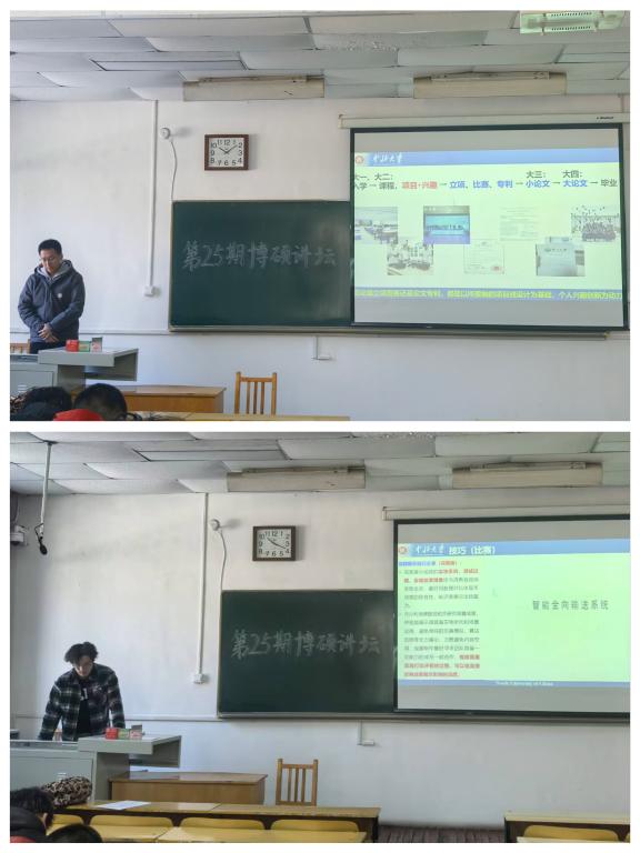 “一苇以航”辅导员工作室在04103H成功举办了第二十五期博硕论坛。此次论坛有幸邀请到辛泽洲、贾寅智两位优秀研究生同学进行讲解,为本科生分享经验。
