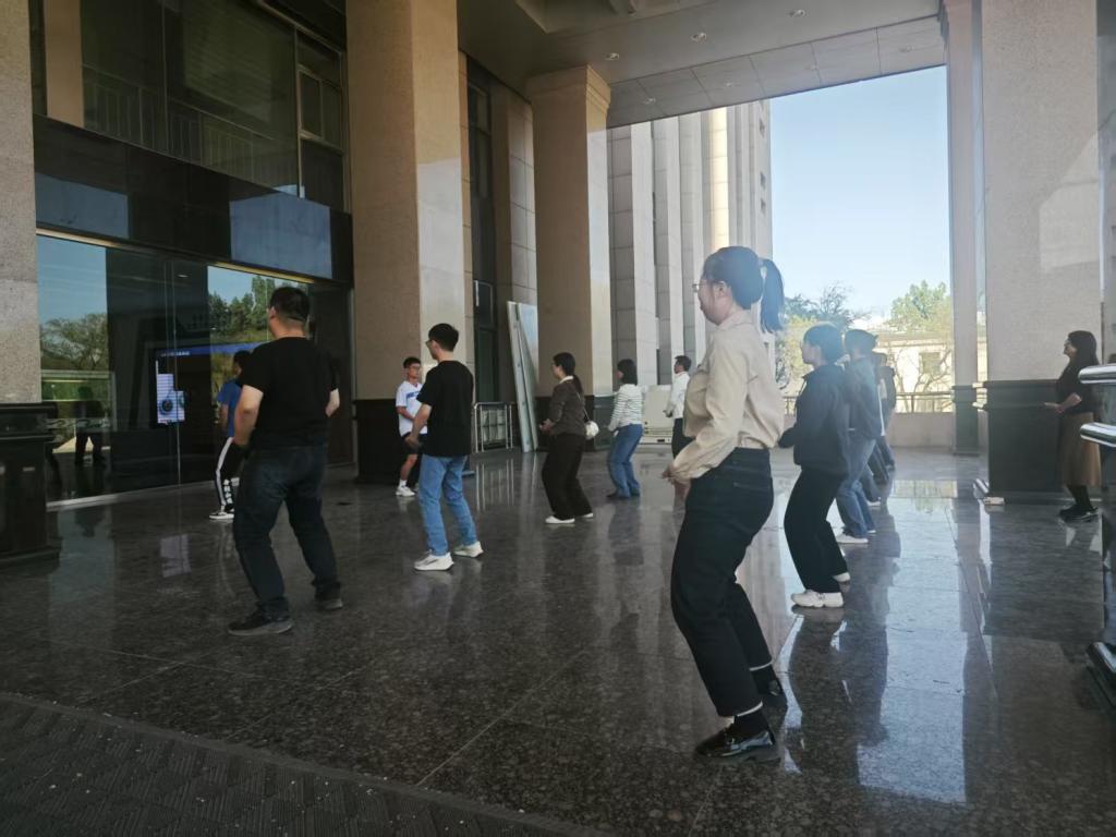 本次活动旨在引导广大教职工通过习练八段锦这一国家级非物质文化遗产、优秀的传统健身功法,达到舒展筋骨、调和气血、改善体质的目的,有效缓解工作压力,提升身心健康水平。活动特别邀请了体育学院两位具有丰富实践经验的硕士研究生担任现场指导。他们耐心细致地讲解了八段锦的动作要领、呼吸配合及习练益处,并进行了标准规范的示范。