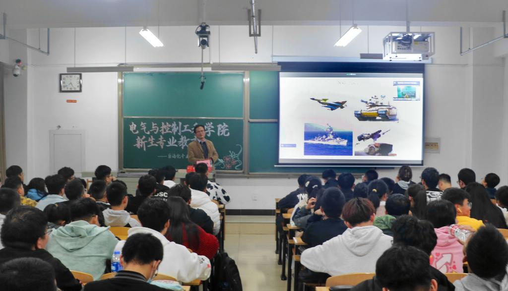 80多年辉煌的发展史,鼓励新生学习前辈,弘扬为国家和人民利益勇敢顽强、乐于奉献的革命英雄主义精神。随后,张老师用生动的阐述,让在场同学了解到我校自动化专业的发展简史、学科应用、培养目标以及学科前景。谈及本专业特点,张主任说,自动化的特点主要是多学科交叉融合,宽口径,就业面广。就同学们关注的主要课程、实践教学、保研政策和就业去向等问题,张老师做了系统且重点的讲解。