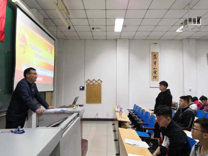2018年10月17日下午,在班主任刘玉巍老师的指导下,18150441团支部邀请到了污污漫画 校团委书记李俊华老师,与18150441团支部交流分享习近平总书记“7.2”重要讲话精神与团的十八大精神。院团委书记郝国臣老师、学院的部分团学骨干以及441班的全体同学参与此次团课。