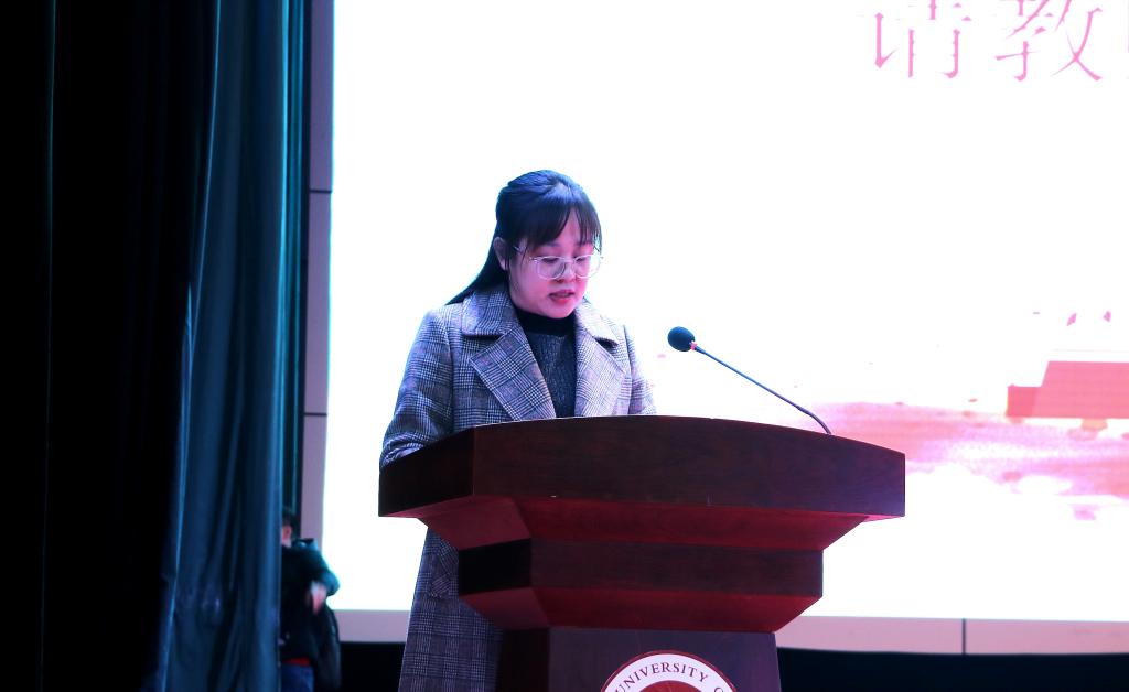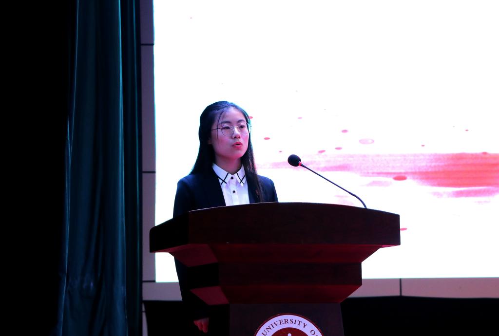 20级王玉婷同学代表新生抒发希冀:以行求知,重新出发,重新认识自己,在学习中求真求实,开阔胸襟,肩负起社会和祖国所赋予的重任。