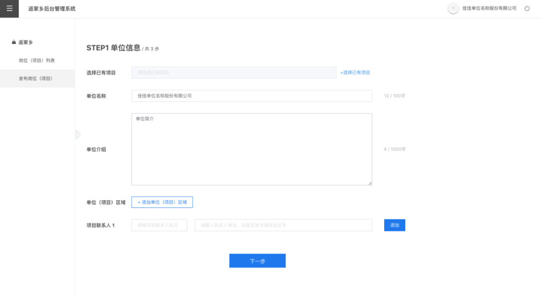 点击左侧【发布岗位】按照发布活动的要求逐步逐项填写活动项目内容
