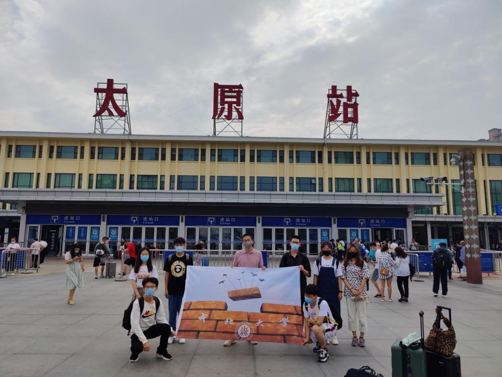 一道门举行了简短的出征仪式。指导老师郝国臣,队长郭俊,队员李瑜、湖布沁、黄莹等14人参加了仪式。随后大家乘坐835路公交车和出租车到达了火车站,经过取票和办理手续等一系列操作后,实践队全体成员在车站进行了合影。