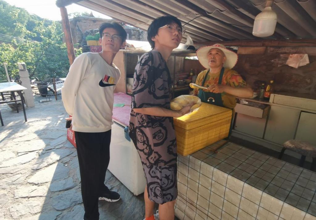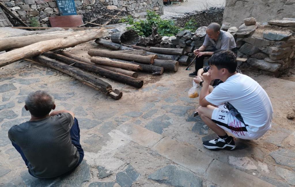 我们吃过饭后四处走访,古村那些高龄老人依旧在忙碌之中,砍柴,砌墙,修补屋顶……看见老人们脸上沟壑般的皱纹,我们依旧感到心酸。我们再去拜访卖窝窝头的老奶奶,她依旧满脸慈祥的笑容。对于农村人口以老人为主的问题,她讲道,现在还在的老人,主要是对村落含有不舍的感情,不愿意走。但是这不禁让我们想道,缺少年轻人的古村,往后该怎么办呢?