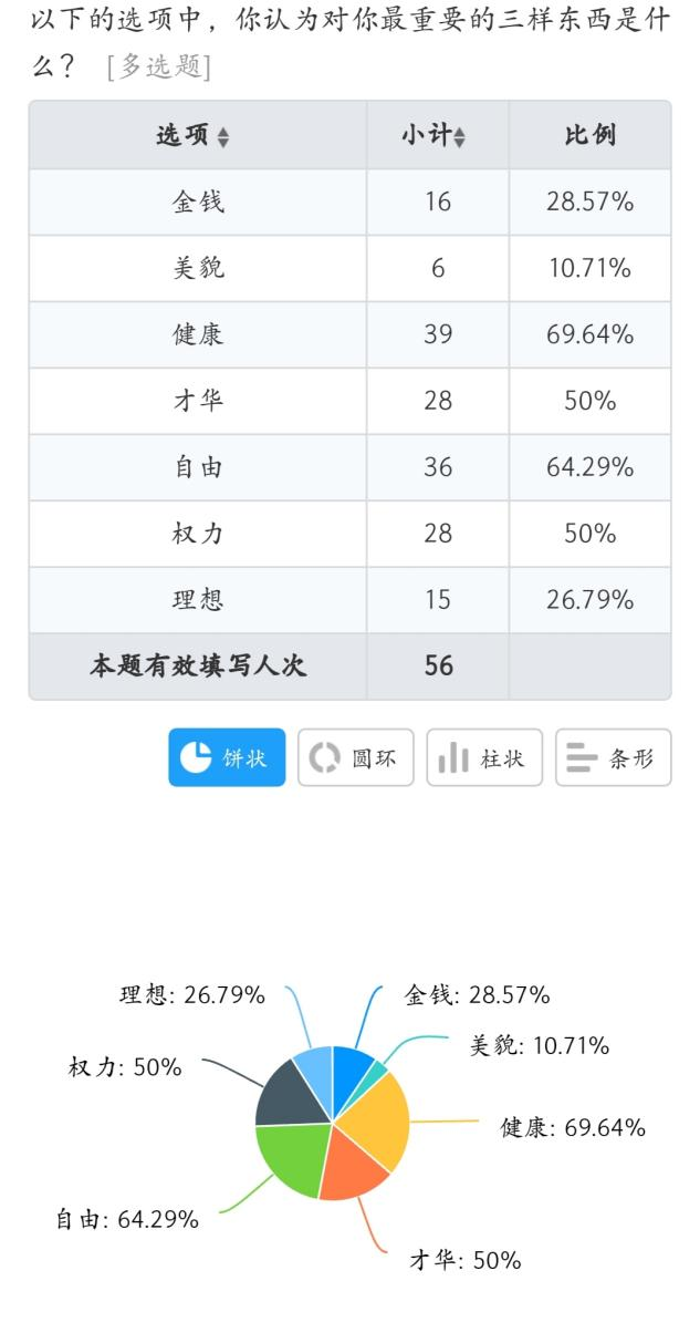 由于社会竞争日趋激烈,由此衍生出来的越来越看重个人的价值这从第二题中的关于价值追求前3位就可以看出来,不管好坏与否这种趋势在本次调查中表现得很明显。同时也显示出大学生开始倾心于注重实用、追求成功的价值观念,这显然与传统的重义轻利、默默奉献的价值观形成冲突。