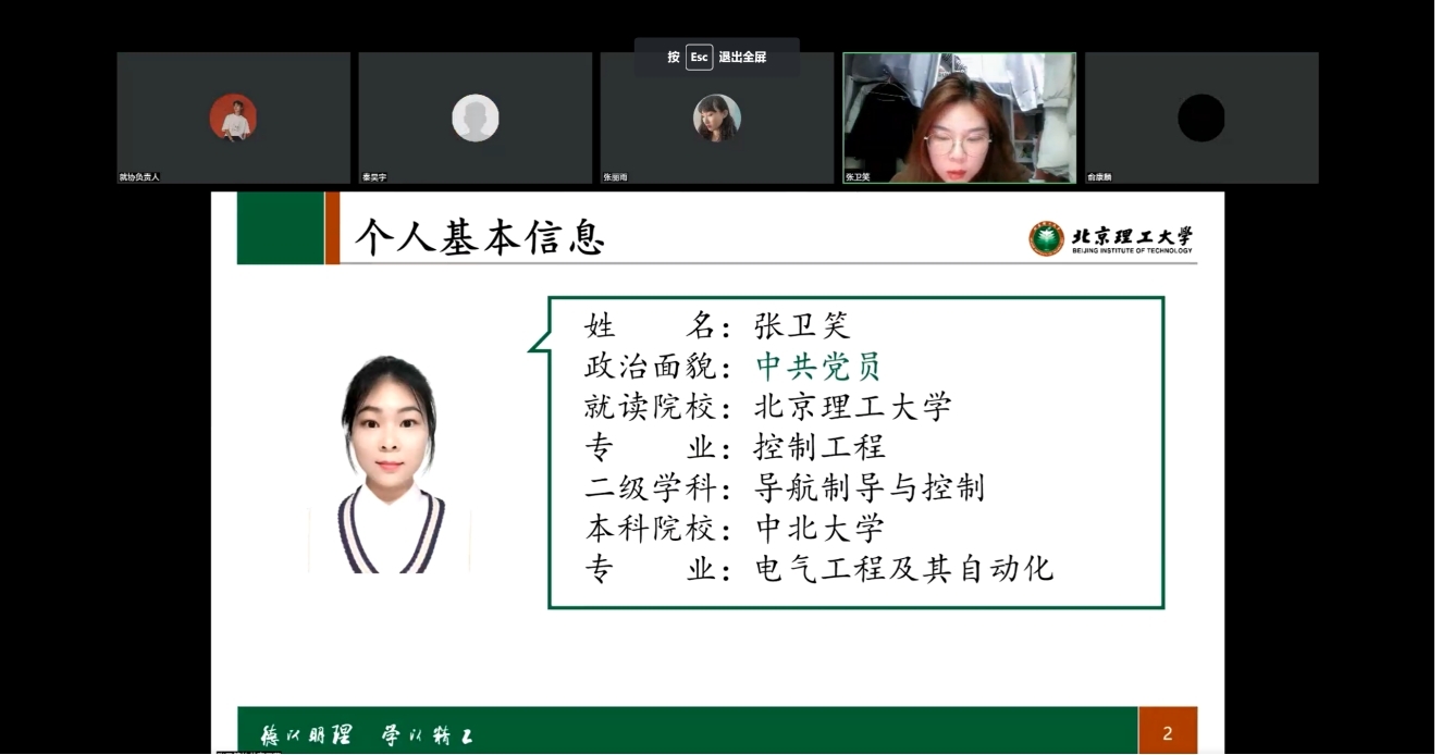 采用视频会议方式召开了2024届考研升学指导会。院党委副书记兼副院长杜苇、团委书记郝国臣、20级班主任张栋老师以及20级准备考研的同学参加了本次会议。会议邀请了四位考研成功的优秀校友主讲。