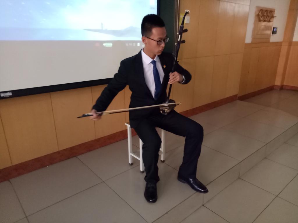 休息之余,文艺部庞琳杰同学为我们带来了二胡独奏《走进新时代》,使现场气氛格外活跃。
