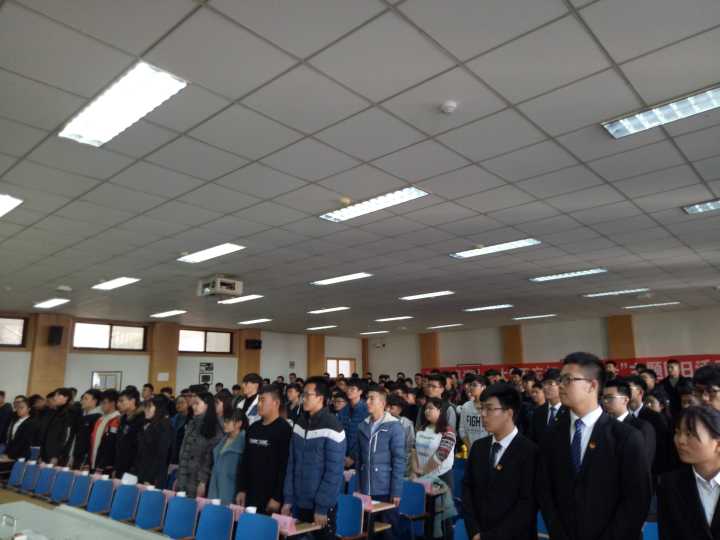 答辩伊始,全体成员起立,奏唱团歌,庄严的的共青团团歌使与会成员深感作为一名团员的责任与光荣,现场气氛渐入佳境。参加本次团日答辩的班级代表以PPT、新闻联播、表演的形式,对班级的团日活动进行了详细的讲解。他们用流利的语言,别出心裁的表达方式,或斗志昂扬或妙趣横生地向现场嘉宾展示了自己班级形式丰富的团日活动。在他们的精彩答辩中,我们领略了各团支部的风采,学习了十九大的精神内涵,可以看出团日活动从策划到举办,同学们参与热情高涨并付出了很大的努力。