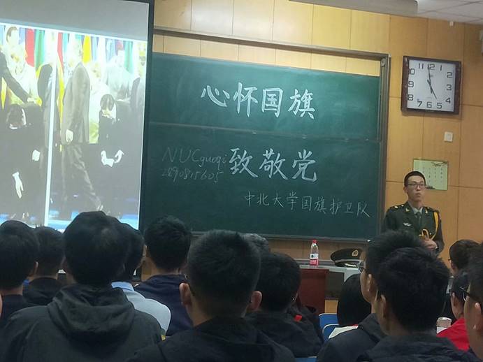 国旗护卫队主办的“心怀国旗致敬党”的爱国主义宣讲会在11309H教室顺利召开。与会团体有17030143, 17030141,17150242, 18150343,太行精神协会,国旗护卫队预备队员。