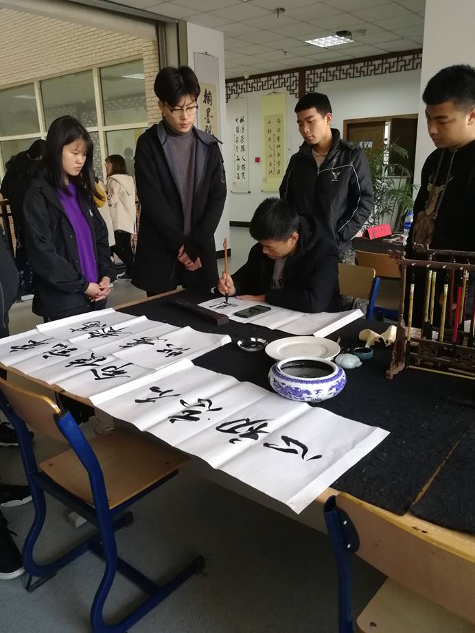 11月9日上午10点,17150242团支部代表准时到达活动地点,经过书画社同学简单介绍后,大家对传统的书法的认识更上了一个阶梯,我们在书画社的成员带领下,参观了耕砚书画社的作品。在参观中,大家对传统的书法知识及书画作品产生了极大的乐趣。