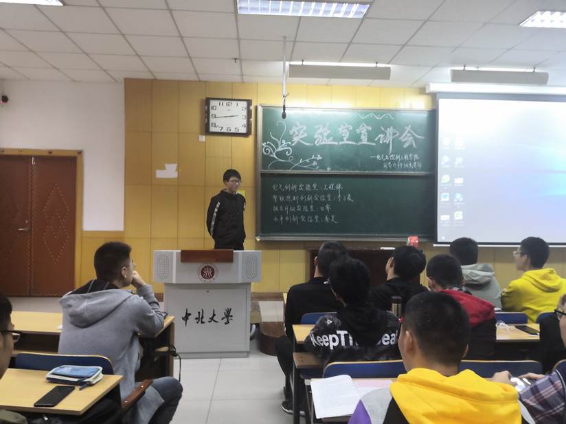 上半场,轨道创新实验室主讲人徐子凡和电子创新实验室主讲人张羽鹏将实验室简介,实验室的师资力量、日常活动和实验室主要项目、作品作为宣讲重点,同时也为同学们对一些实验室的器材及其用法进行了讲解。最后,两位主讲人结合现今大学生生涯发展趋势,强调了加入实验室的好处。通过主讲人的讲解,同学们提高了对自动化类专业的认知,对实验室产生了更加浓厚的兴趣。