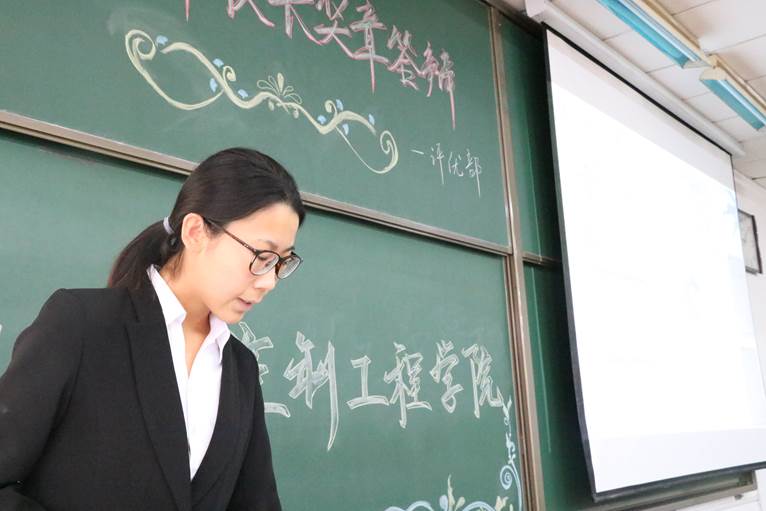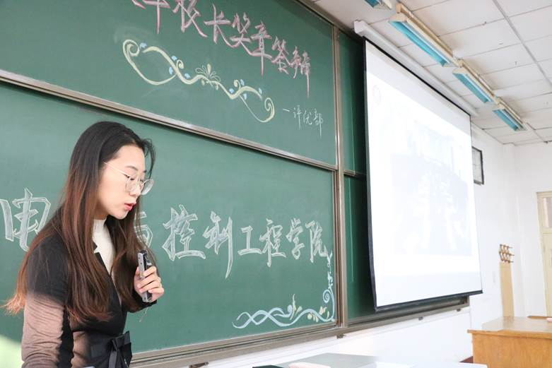 随后,竞选校长奖章的五位同学:朱敏、辛金豆、宋围娜、胡璐娟、宋一丹,依次上台进行答辩。答辩内容主要围绕着大学四年以来的学习经历和大学期间参加的各种比赛及获得奖项展开。每位答辩者的大学经历都非常丰富,从最开始的入团到最后的入党,从一开始的参与比赛到在大赛中获得省奖和国奖,从一开始的实验小白到最后的实验负责人,这些都离不开他们自己的努力和奋斗。而在座的观众体会到的则是另一种拼搏奋进,积极向上的大学生活。