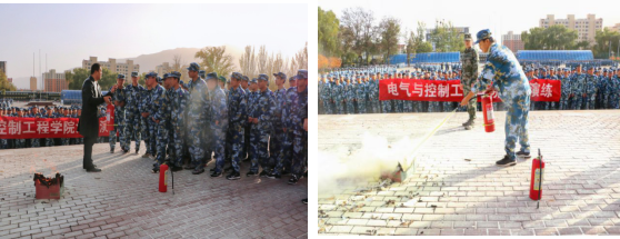 杨鑫教官为大家讲解了基本消防安全制度、在突发火灾情况下的各种应急处理办法以及自救互救常识和技能,分析了校园火灾事件的各种起火原因,并以视频的形式让同学们更直观认识到正确逃生的重要性。随后,薛艳霞阐明了本次消防安全教育讲座的重要意义,告诫全体学生应认真学习消防知识,高度重视个人安全,预防校园火灾,保护个人生命财产安全。会后,杨鑫教官在行知广场带领全体新生进行了安全教育实操演练讲解,演练过程中杨教官给学生们详细说明了干粉灭火器的使用教学,学生们积极上台进行实操。