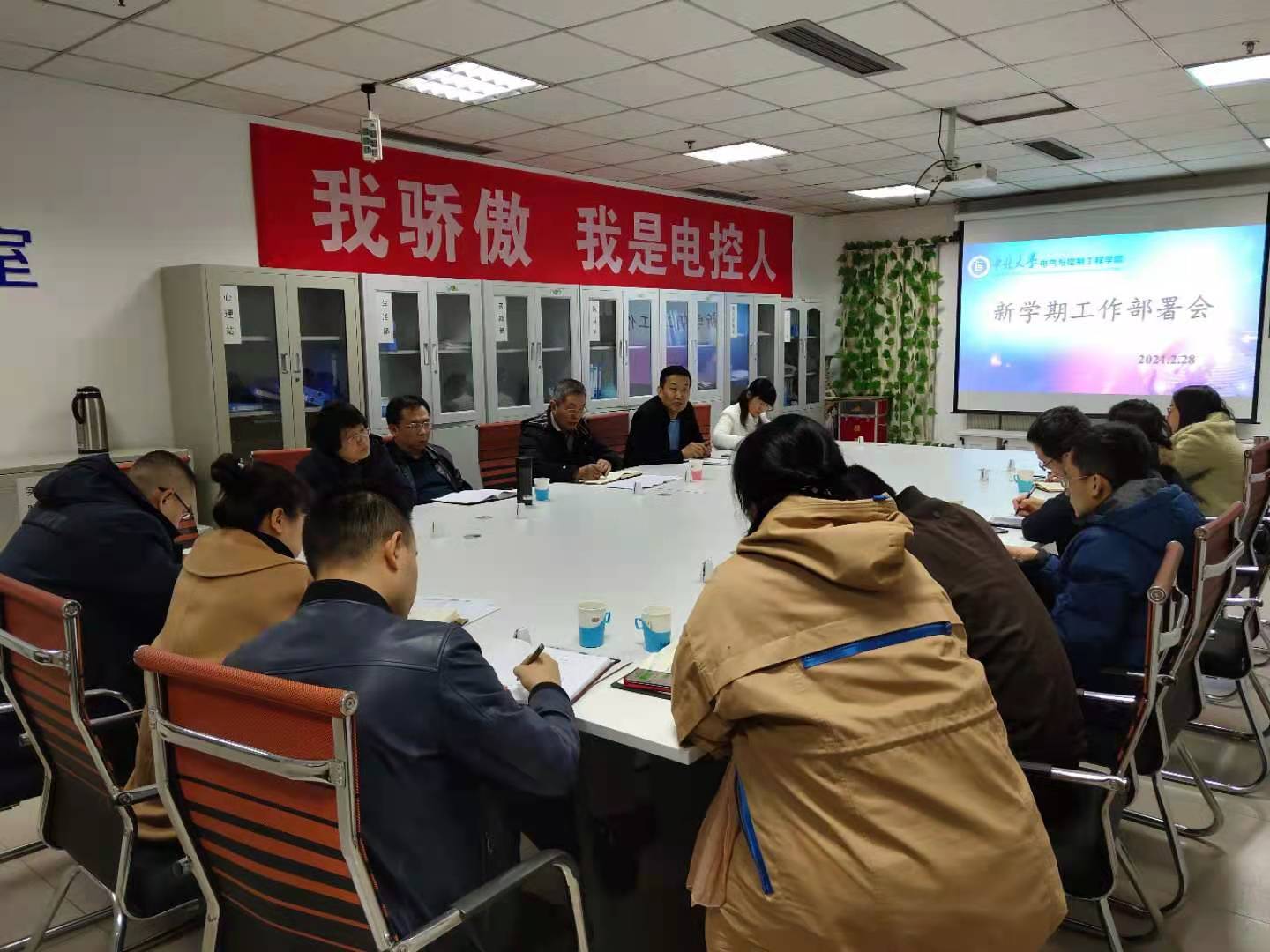 会上,院长马铁华传达了学校2021年工作部署暨学院目标任务汇报会议精神,阐述了学院博士点申报、学科评估重点工作,介绍了科研工作、一流专业建设、80周年校庆工作、校企对接、学团工作发展方向、“十四五”规划撰写、青年教师培养等有关工作。