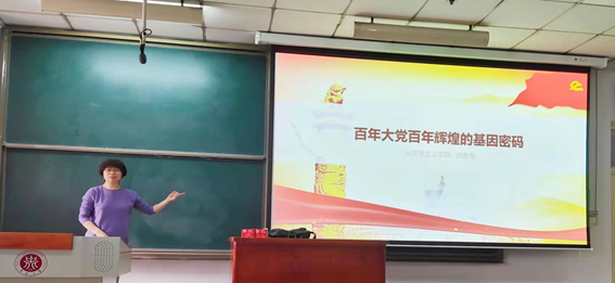 党委邀请马克思主义学院张春秀老师,以《百年大党百年辉煌的基因密码》为题做宣讲报告。全院师生130余人参加了本次党史学习教育。