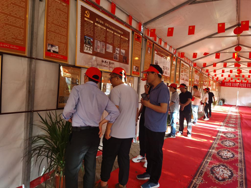首先,党员们在讲解员的带领下参观了为庆祝“建党100周年”专设的党史宣传展览室。展室内图文并茂展示了我们党自1921年诞生以来,不断发展壮大的过程中发生的重大历史事件;回眸了我们党领导革命、建设和改革的伟大实践历程;再现了我们党领导人民进行新民主主义革命进而建立新中国的丰功伟绩和基本经验。参观中,大家认真倾听解说员的讲解,仔细观看每一张图片、浏览每一段文字,回顾了中国共产党波澜壮阔、艰难曲折、不屈不挠、英勇奋斗的发展历程,深切感悟中国共产党人为救国救民百折不挠、勇往直前的精神。