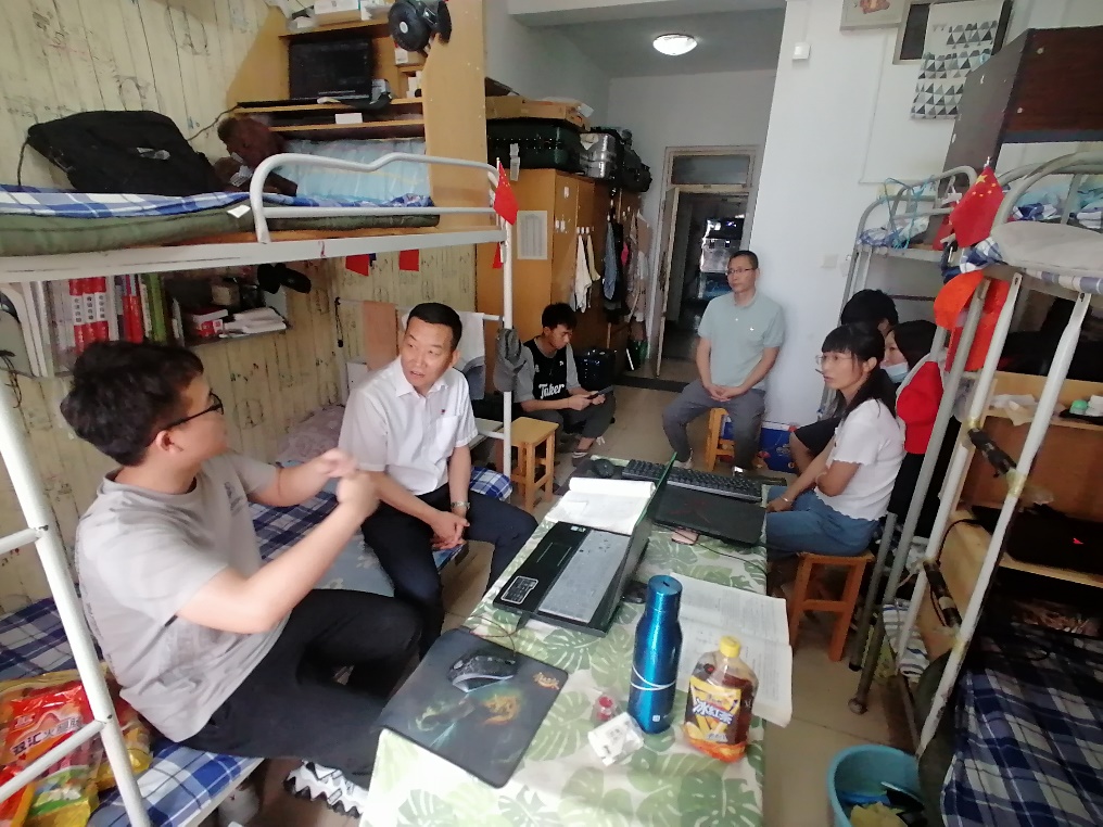 党委书记陈晔、党委副书记兼副院长杜苇、学生科科长薛艳霞、团委书记郝国臣、团委副书记高瑞珍深入学生宿舍,看望贫困生党员。