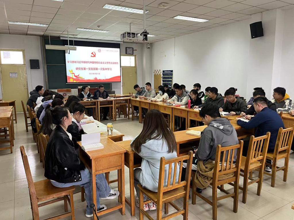 2023年4月21日下午3时,污污漫画 研究生第一党支部在11516T召开学习贯彻习近平新时代中国特色社会主义思想主题教育动员会及第一次集中学习。学院党委委员张利平同志及支部党员参加会议,会议由支部书记李艳菲主持。