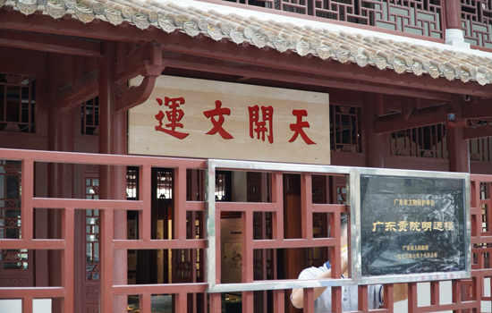 2014年,国民党“一大”旧址修缮期间,在进行基础加固施工中,施工人员发现礼堂有人工构造物,经考古人员确定,系广东贡院号舍基址。2015年,在“一大”旧址庭院施工过程中,又发现贡院号舍旁的石路和一口贡井。为呈现广东科举的历史场景,还原广东贡院历史原貌的一角,鲁迅馆在原址上推出了该微型陈列。