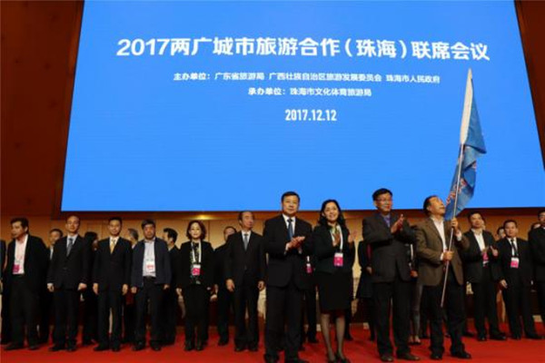 12月12日,2017两广城市旅游合作(珠海)联席会议在广东省珠海市举行。会议以“深化粤桂旅游合作,携手打造粤港澳大湾区世界级旅游区”为主题,珠海等多个城市代表及两省区旅游企业代表在大会上作主旨发言,广西壮族自治区旅游发展委员会与广东省自驾旅游协会签订战略合作框架协议。粤桂两省区旅游委(局)、35个地市政府负责人、旅游委(局)以及旅游企业代表共两百多人出席此次会议。