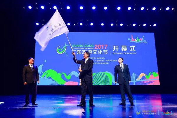 12月12日晚,2017广东旅游文化节开幕式在珠海市举行。副省长邓海光出席开幕式并致辞,并为下届主办城市惠州市授广东旅游文化节会旗。国家旅游局副局长杜江出席并致辞,西藏自治区副主席多吉次珠出席开幕式。珠海市委书记郭元强代表珠海市致欢迎辞。