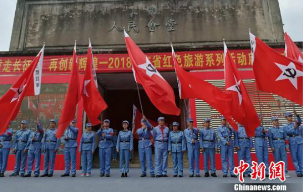 中新网韶关3月24日电 (程景伟 陈锦尧)“重走长征路·再创新辉煌——2018广东省红色旅游系列活动启动仪式”24日在广东韶关南雄市举行。广东省旅游局局长曾颖如在启动仪式上表示,今年广东将打造10条红色旅游精品线路。