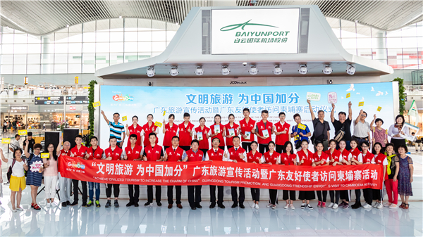为深入贯彻党的十九大和习近平总书记关于文明旅游工作的一系列批示精神,严格落实文化和旅游部关于开展“文明旅游 为中国加分”主题活动的重要部署,6月29日上午,由广东省旅游局主办,广东省人民政府外事办公室、广东省机场管理集团有限公司大力支持的“文明旅游 为中国加分”广东旅游宣传活动暨广东友好使者访问柬埔寨启动仪式在白云机场T2航站楼举行。广东省旅游局副局长曾晓峰、广东省外事办涉外安全处处长叶蓝、广州白云机场副总经理王晓勇、广之旅旅行社副总裁赵文志等相关单位负责人,以及出访柬埔寨的广东友好使者、广东省旅游志愿者、以及出境游组团社和媒体业界代表共120多人参加了本次活动。