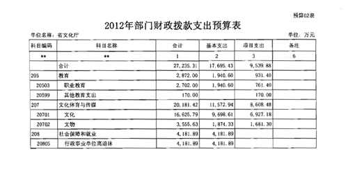 广东省文化厅2012年部门预算公开