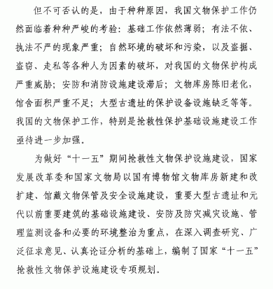 国家发展改革委 国家文物局关于印发国家“十一五”抢救性文物保护设施建设专项规划的通知