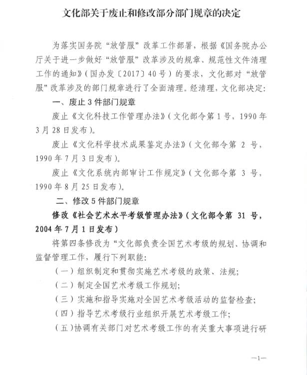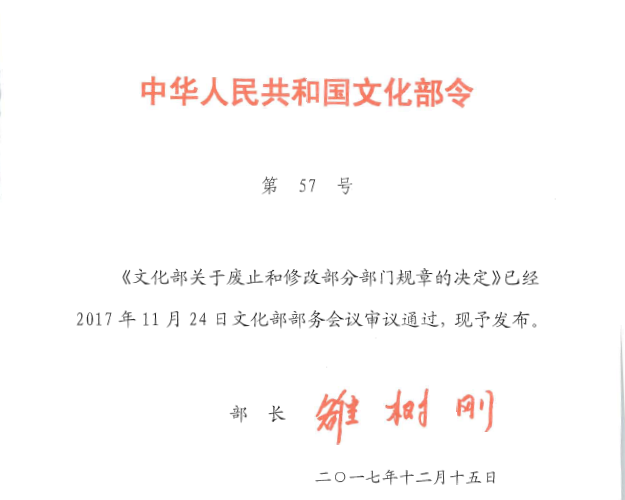 中华人民共和国文化部令 第57号《文化部关于废除和修改部分部门规章的决定》