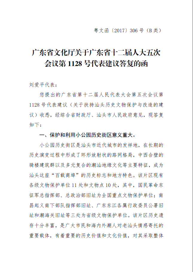 广东省文化厅关于广东省十二届人大五次会议第1128号代表建议答复的函