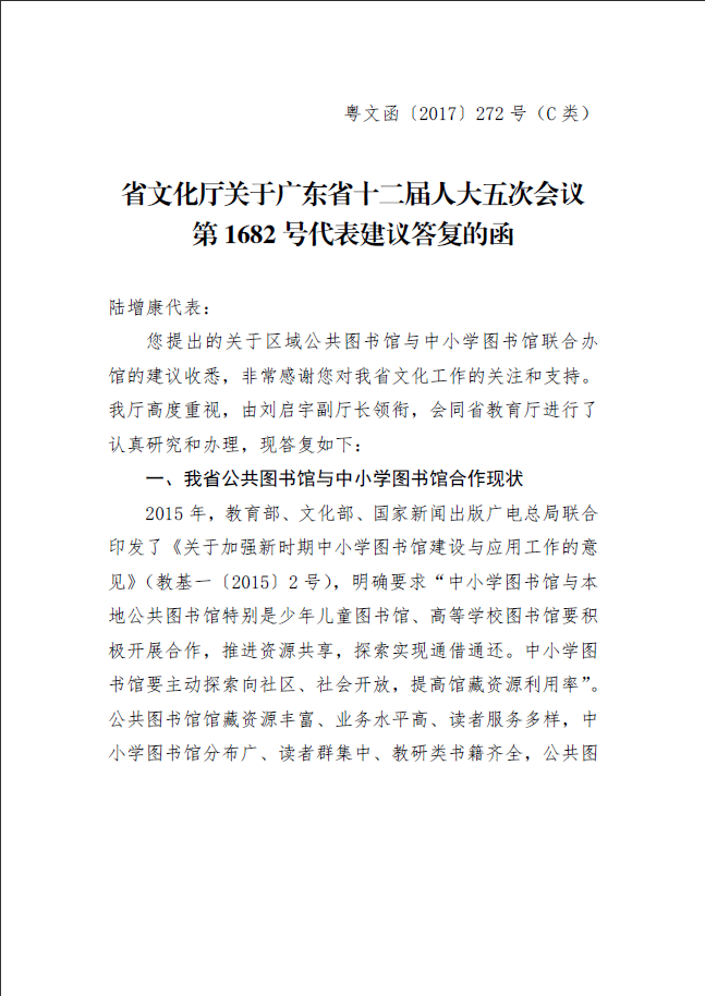 省文化厅关于广东省十二届人大五次会议第1682号代表建议的答复