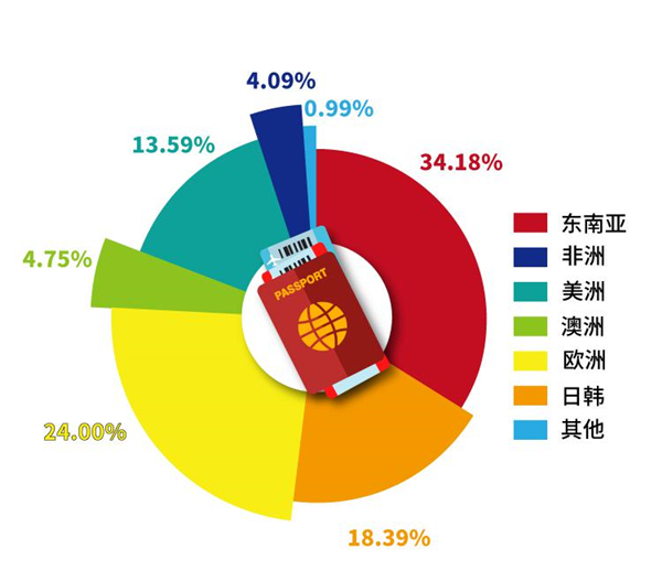 2018年中国护照的含金量大增,免签、落地签国家和地区达73个,比去年国庆增加了8个,增幅达12%,综合百度、携程网、广东旅游大数据平台数据显示,广东出境游人次预计大幅增长,最受青睐的仍是日韩、欧洲、东南亚国家,“一带一路”沿线国家成为出境游新宠。